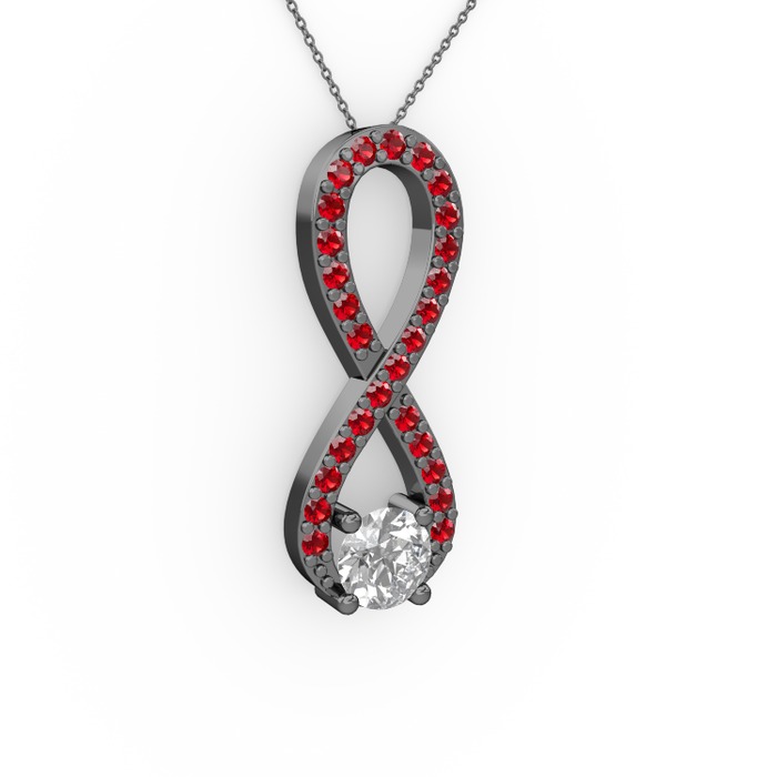Pırlanta ve garnet 925 ayar siyah rodyum kaplama gümüş kolye (0.24 karat, 40 cm gümüş rolo zincir)