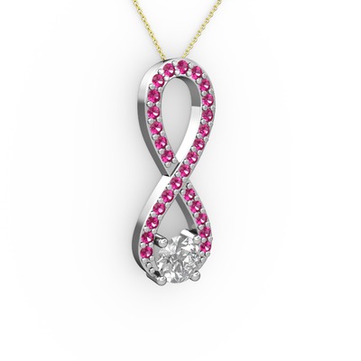 Pırlanta ve rodolit garnet 14 ayar beyaz altın kolye (0.24 karat, 40 cm altın rolo zincir)