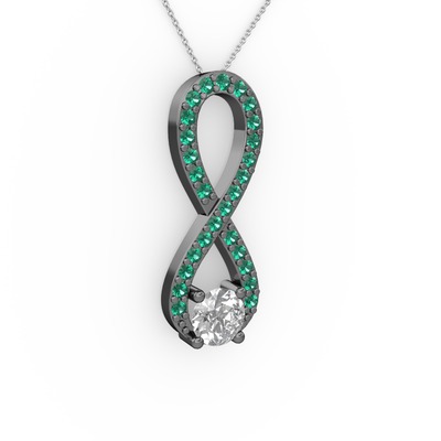 Pırlanta ve yeşil kuvars 925 ayar siyah rodyum kaplama gümüş kolye (0.24 karat, 40 cm beyaz altın rolo zincir)