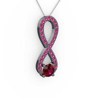 Rodolit garnet 925 ayar siyah rodyum kaplama gümüş kolye (40 cm beyaz altın rolo zincir)