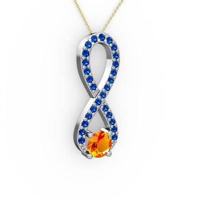 Sitrin ve lab safir 925 ayar gümüş kolye (40 cm gümüş rolo zincir)