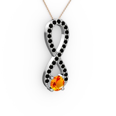 Sitrin ve siyah zirkon 14 ayar beyaz altın kolye (40 cm rose altın rolo zincir)