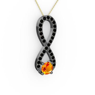 Sitrin ve siyah zirkon 925 ayar siyah rodyum kaplama gümüş kolye (40 cm gümüş rolo zincir)