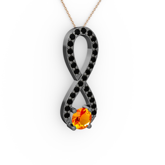 Sitrin ve siyah zirkon 925 ayar siyah rodyum kaplama gümüş kolye (40 cm rose altın rolo zincir)