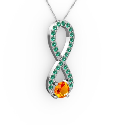 Sitrin ve yeşil kuvars 14 ayar beyaz altın kolye (40 cm beyaz altın rolo zincir)