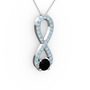 Siyah zirkon ve akuamarin 14 ayar beyaz altın kolye (40 cm beyaz altın rolo zincir)