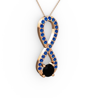 Siyah zirkon ve lab safir 18 ayar rose altın kolye (40 cm gümüş rolo zincir)