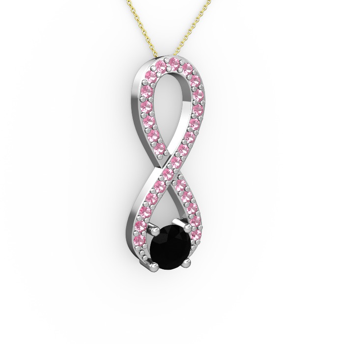 Siyah zirkon ve pembe kuvars 18 ayar beyaz altın kolye (40 cm altın rolo zincir)