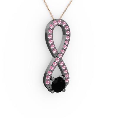 Siyah zirkon ve pembe kuvars 925 ayar siyah rodyum kaplama gümüş kolye (40 cm gümüş rolo zincir)