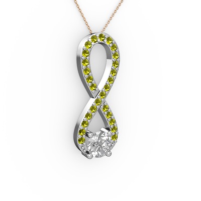 Swarovski ve peridot 14 ayar beyaz altın kolye (40 cm gümüş rolo zincir)