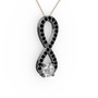Swarovski ve siyah zirkon 925 ayar siyah rodyum kaplama gümüş kolye (40 cm rose altın rolo zincir)