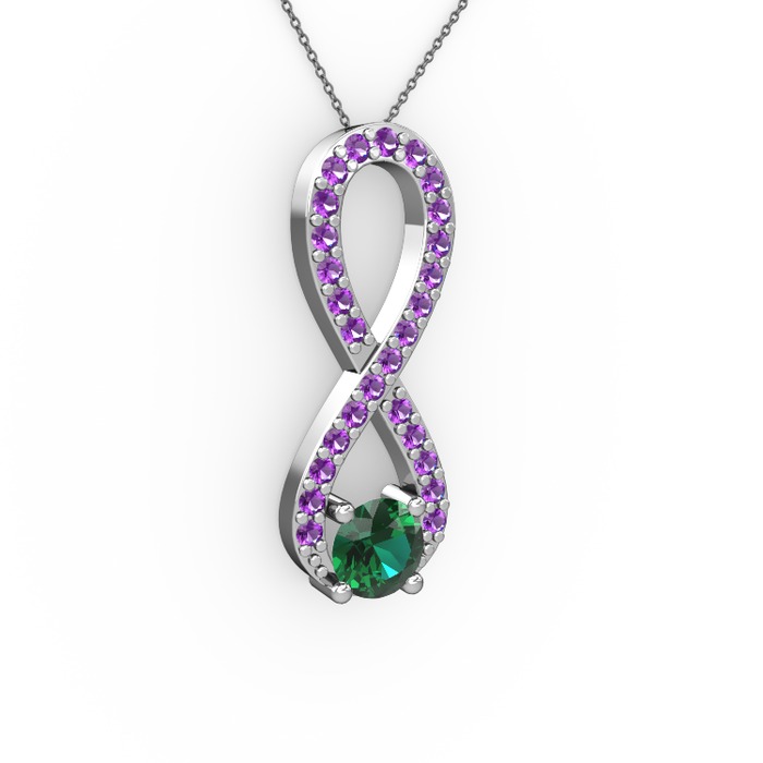 Yeşil kuvars ve ametist 18 ayar beyaz altın kolye (40 cm gümüş rolo zincir)