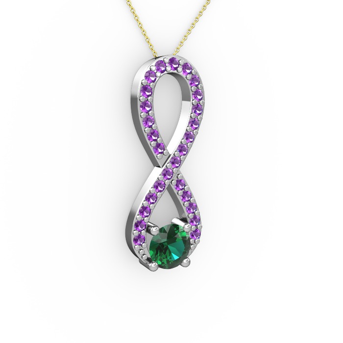 Yeşil kuvars ve ametist 925 ayar gümüş kolye (40 cm altın rolo zincir)