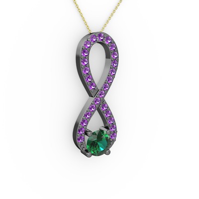 Yeşil kuvars ve ametist 925 ayar siyah rodyum kaplama gümüş kolye (40 cm altın rolo zincir)