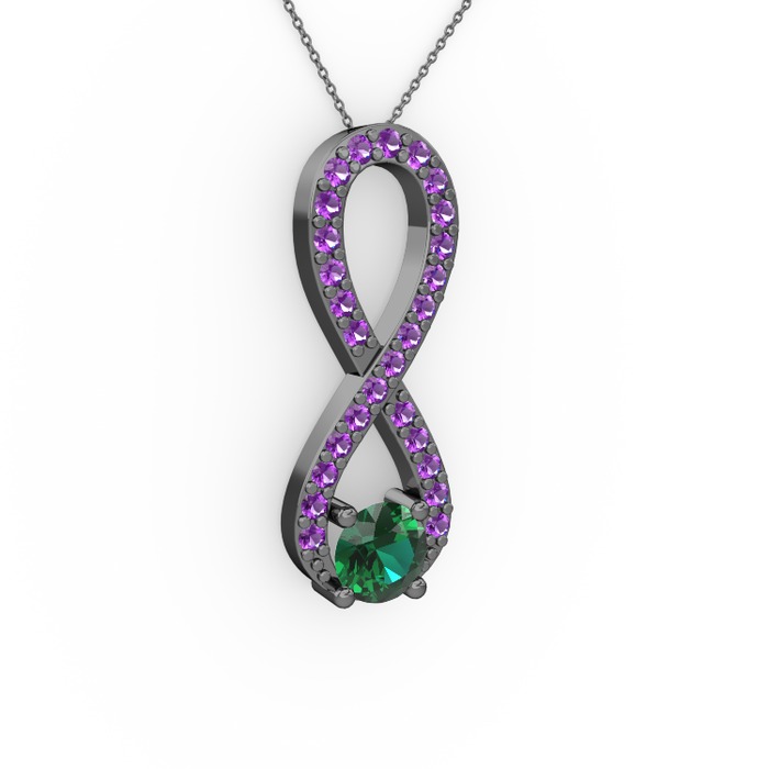 Yeşil kuvars ve ametist 925 ayar siyah rodyum kaplama gümüş kolye (40 cm gümüş rolo zincir)