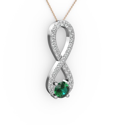 Yeşil kuvars ve beyaz zirkon 8 ayar beyaz altın kolye (40 cm rose altın rolo zincir)