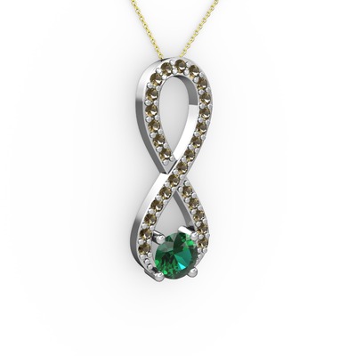 Yeşil kuvars ve dumanlı kuvars 18 ayar beyaz altın kolye (40 cm altın rolo zincir)