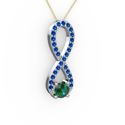 Yeşil kuvars ve lab safir 925 ayar gümüş kolye (40 cm altın rolo zincir)
