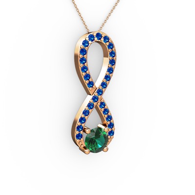 Yeşil kuvars ve lab safir 925 ayar rose altın kaplama gümüş kolye (40 cm gümüş rolo zincir)