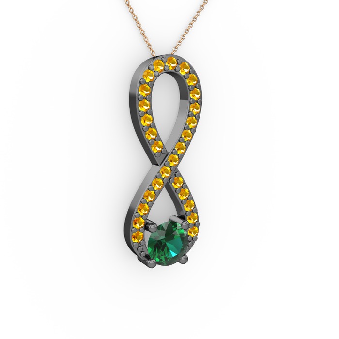 Yeşil kuvars ve sitrin 925 ayar siyah rodyum kaplama gümüş kolye (40 cm gümüş rolo zincir)