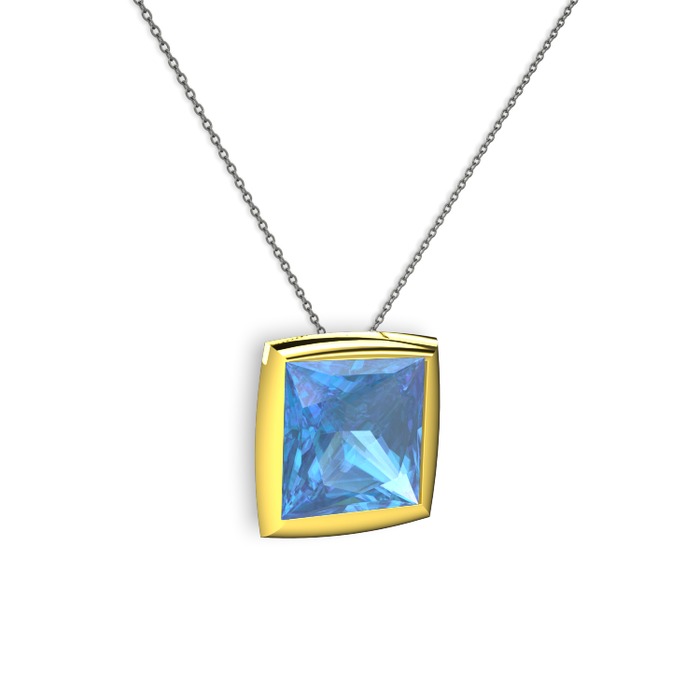 Akuamarin 8 ayar altın kolye (40 cm gümüş rolo zincir)