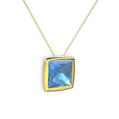 Akuamarin 925 ayar altın kaplama gümüş kolye (40 cm altın rolo zincir)