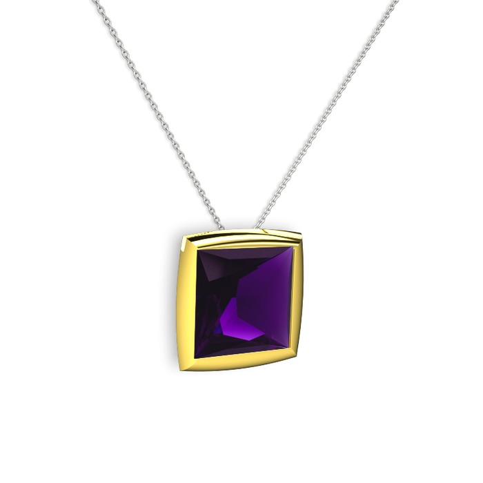 Ametist 925 ayar altın kaplama gümüş kolye (40 cm beyaz altın rolo zincir)