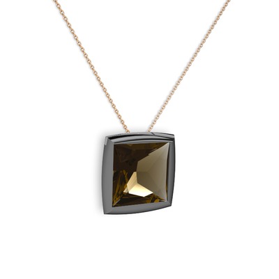Dumanlı kuvars 925 ayar siyah rodyum kaplama gümüş kolye (40 cm rose altın rolo zincir)