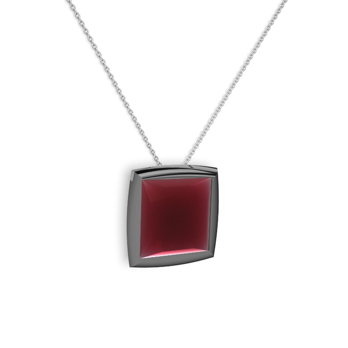Kök yakut 925 ayar siyah rodyum kaplama gümüş kolye (40 cm beyaz altın rolo zincir)