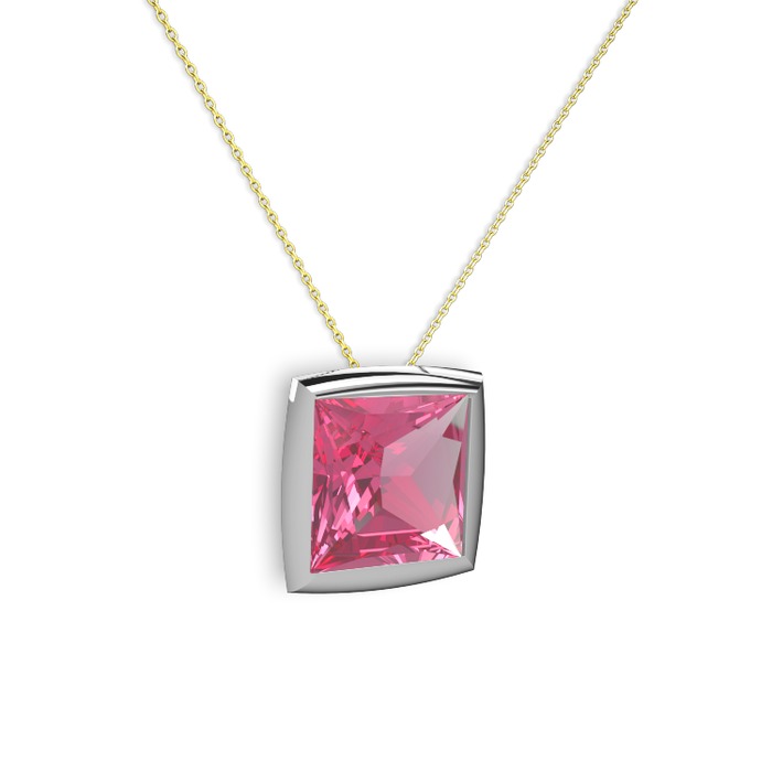 Pembe kuvars 925 ayar gümüş kolye (40 cm altın rolo zincir)