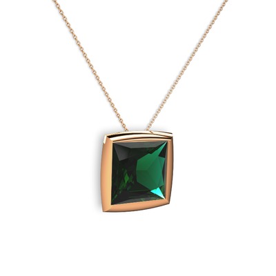 Yeşil kuvars 14 ayar rose altın kolye (40 cm rose altın rolo zincir)