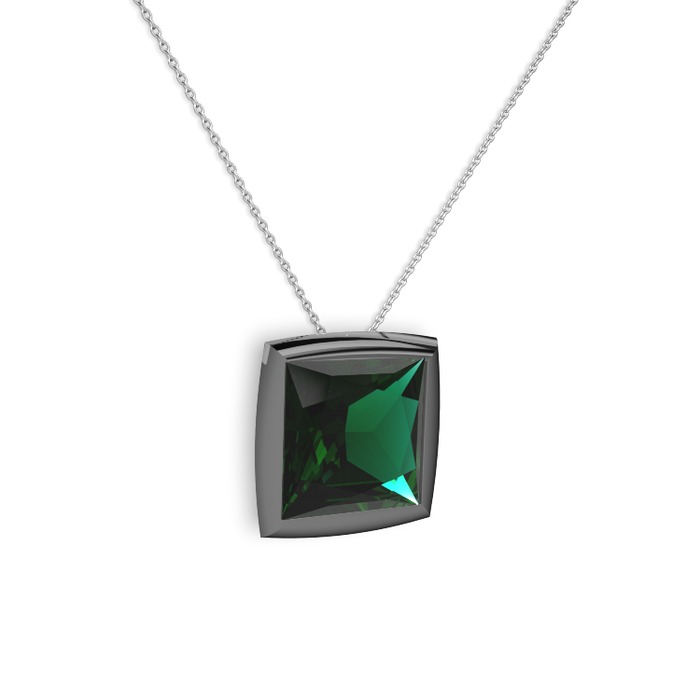 Yeşil kuvars 925 ayar siyah rodyum kaplama gümüş kolye (40 cm beyaz altın rolo zincir)