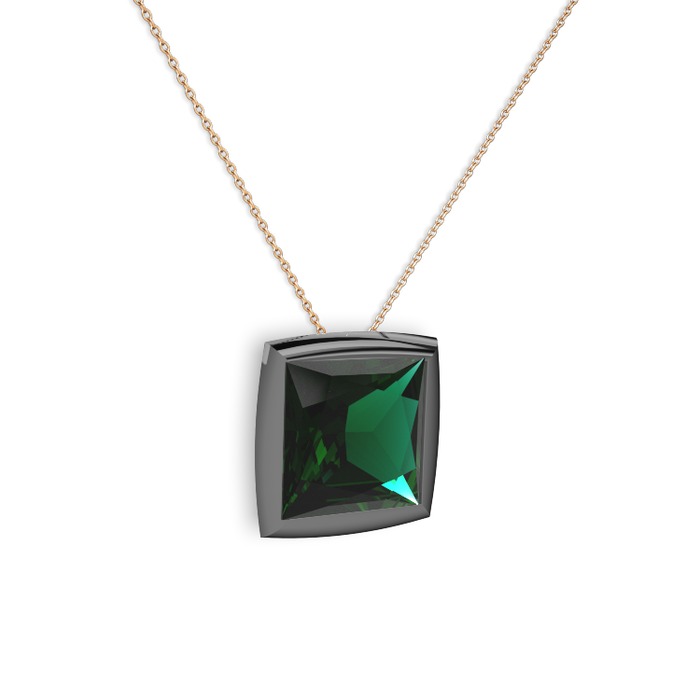 Yeşil kuvars 925 ayar siyah rodyum kaplama gümüş kolye (40 cm gümüş rolo zincir)