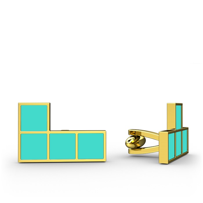 8 ayar altın kol düğmesi (Turkuaz mineli)