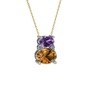 Ametist, dumanlı kuvars ve pırlanta 14 ayar beyaz altın kolye (0.036 karat, 40 cm gümüş rolo zincir)