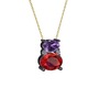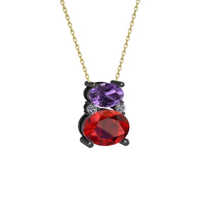 Ametist, garnet ve pırlanta 925 ayar siyah rodyum kaplama gümüş kolye (0.036 karat, 40 cm altın rolo zincir)
