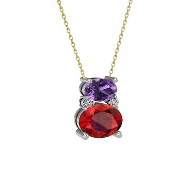 Ametist, garnet ve swarovski 8 ayar beyaz altın kolye (40 cm altın rolo zincir)