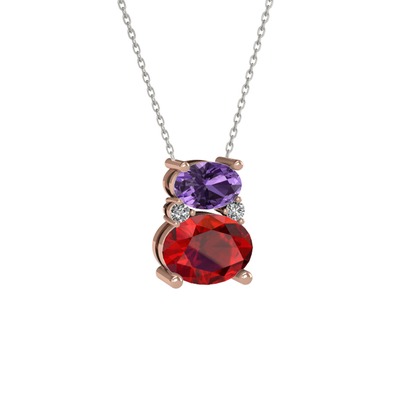 Ametist, garnet ve swarovski 925 ayar rose altın kaplama gümüş kolye (40 cm gümüş rolo zincir)