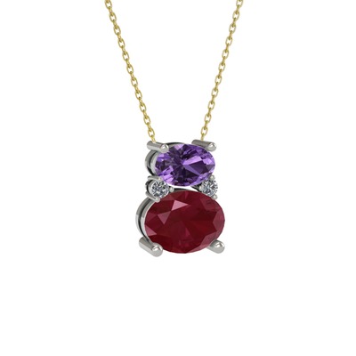 Ametist, kök yakut ve pırlanta 925 ayar gümüş kolye (0.036 karat, 40 cm altın rolo zincir)