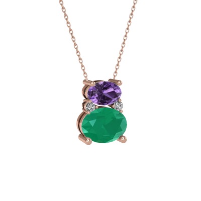 Ametist, kök zümrüt ve swarovski 14 ayar rose altın kolye (40 cm rose altın rolo zincir)