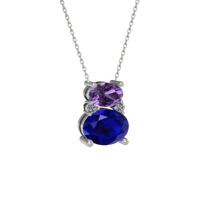 Ametist, lab safir ve pırlanta 14 ayar beyaz altın kolye (0.036 karat, 40 cm gümüş rolo zincir)