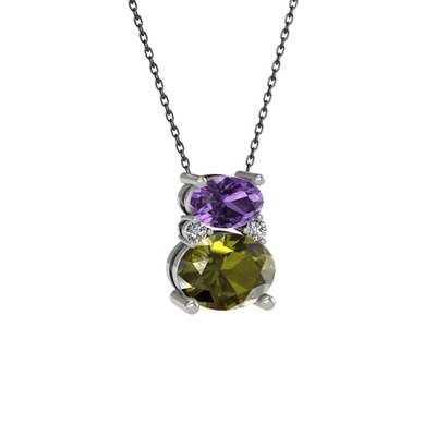 Ametist, peridot ve swarovski 18 ayar beyaz altın kolye (40 cm gümüş rolo zincir)