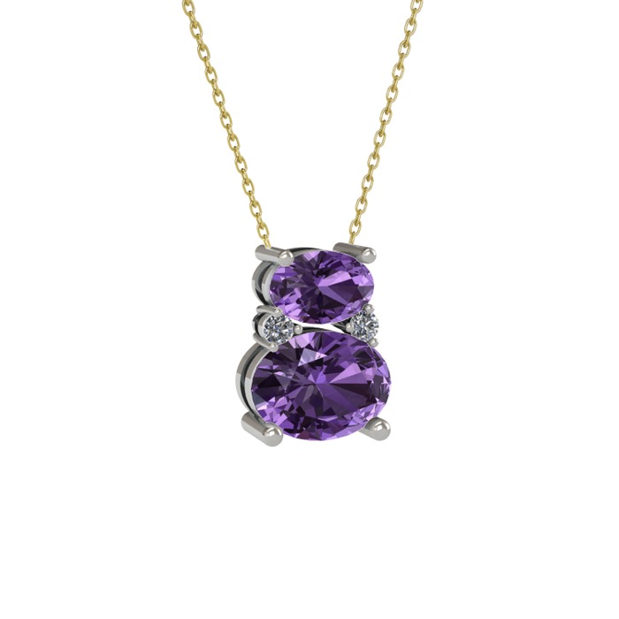 Ametist ve pırlanta 8 ayar beyaz altın kolye (0.036 karat, 40 cm altın rolo zincir)