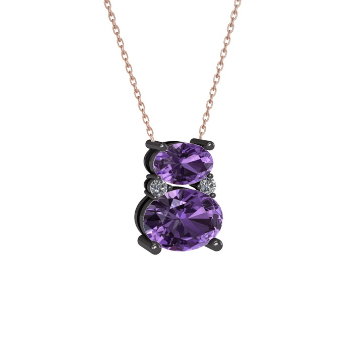 Ametist ve pırlanta 925 ayar siyah rodyum kaplama gümüş kolye (0.036 karat, 40 cm gümüş rolo zincir)