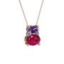 Ametist, rodolit garnet ve pırlanta 925 ayar rose altın kaplama gümüş kolye (0.036 karat, 40 cm gümüş rolo zincir)