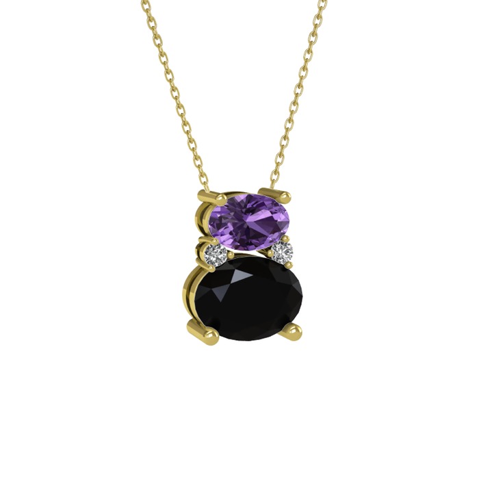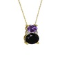 Ametist, siyah zirkon ve swarovski 8 ayar altın kolye (40 cm altın rolo zincir)