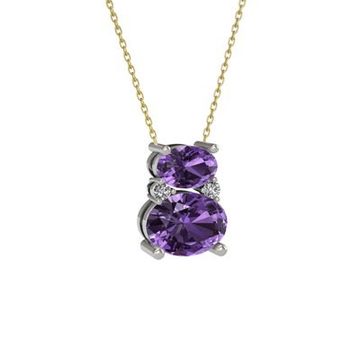Ametist ve swarovski 18 ayar beyaz altın kolye (40 cm altın rolo zincir)