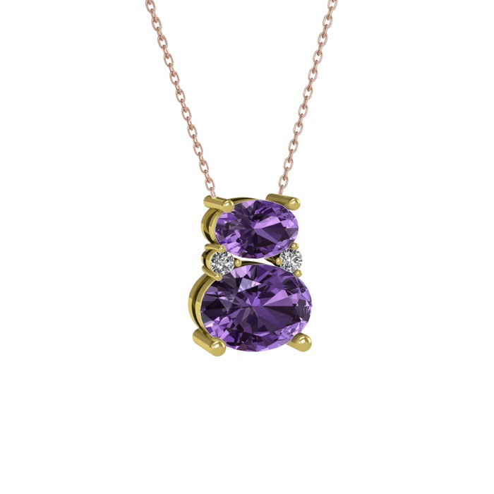 Ametist ve swarovski 925 ayar altın kaplama gümüş kolye (40 cm rose altın rolo zincir)
