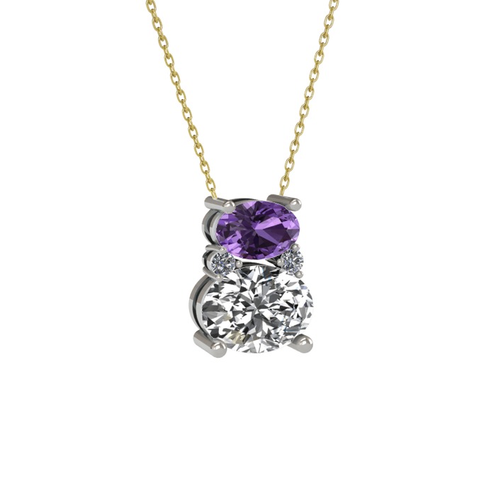 Ametist, swarovski ve pırlanta 8 ayar beyaz altın kolye (0.036 karat, 40 cm altın rolo zincir)