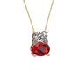 Beyaz zirkon, garnet ve pırlanta 14 ayar rose altın kolye (0.036 karat, 40 cm altın rolo zincir)